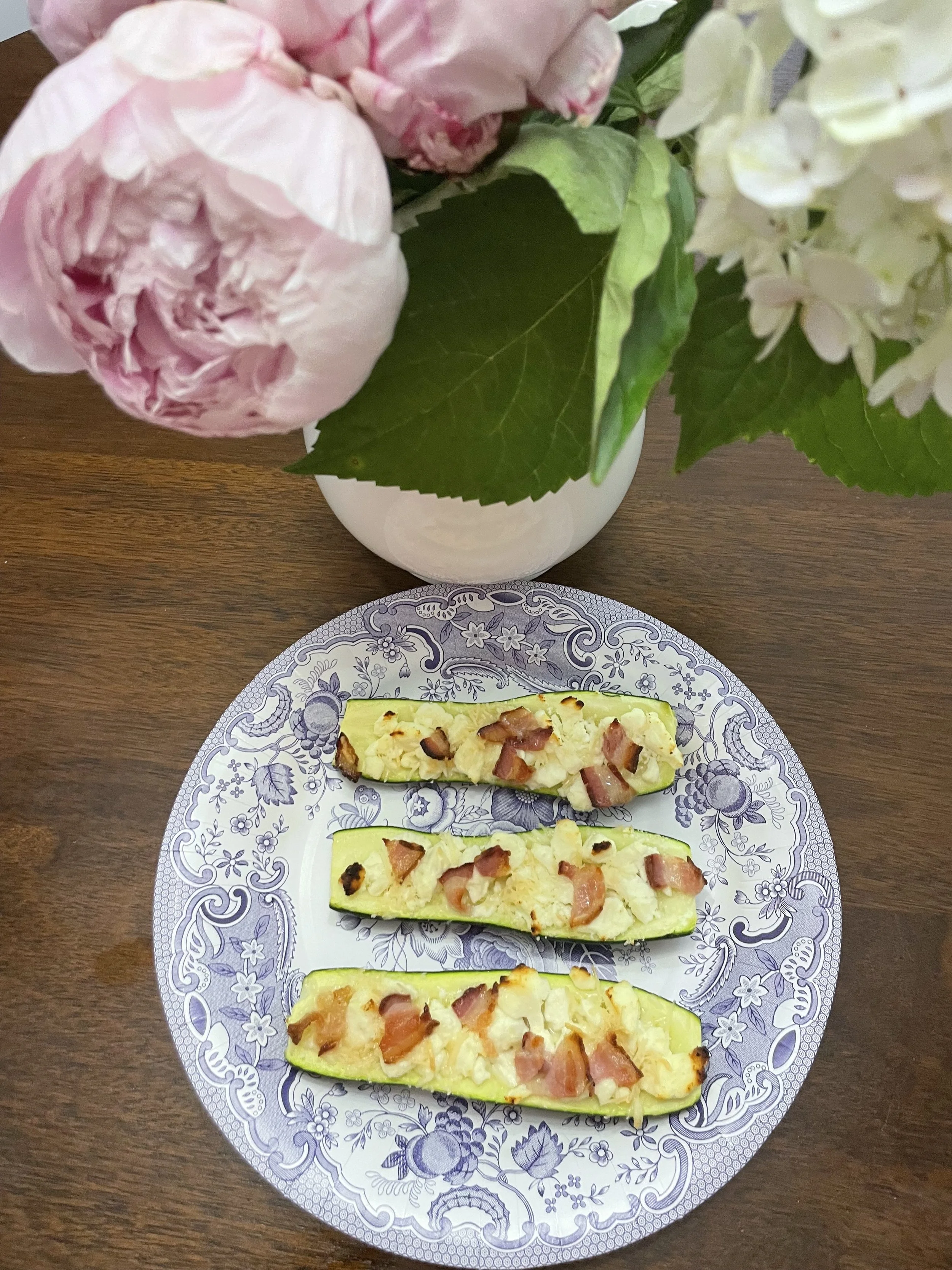 Fill the middle of the zucchinis with the feta and Parmesan